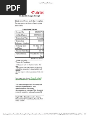 Airtel Prepaid Recharge Receipt Format Receipt Debit Card
